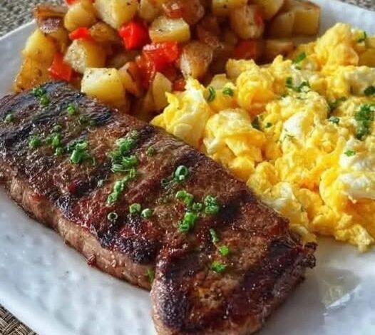 🥩 Steakhouse Breakfast Plate with Scrambled Eggs & Home Fries 🍳🥔