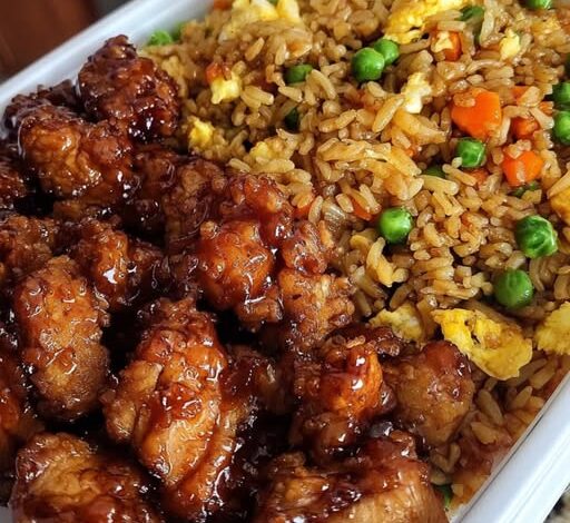 Sweet, sticky, and savory chicken paired with smoky fried rice—perfect balance of textures and flavors in every bite.