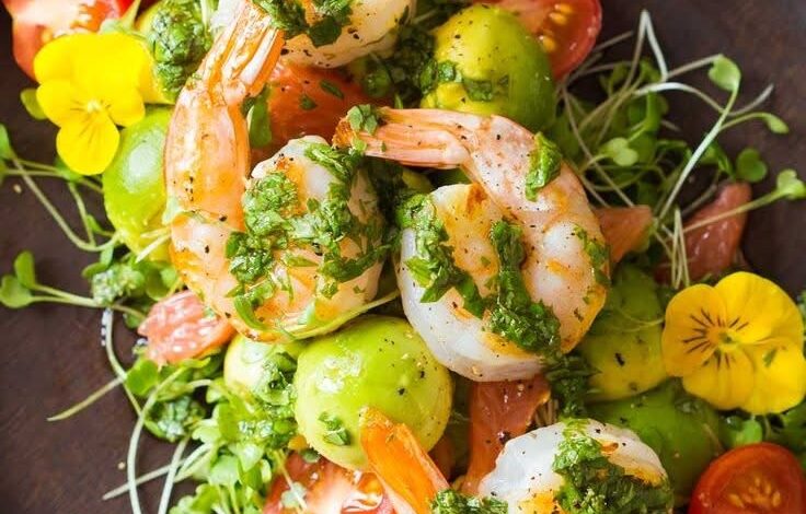 4. Assemble: In a bowl, combine arugula, shrimp, avocado, tomatoes, and grapefruit. Drizzle with the cilantro dressing and toss gently.
