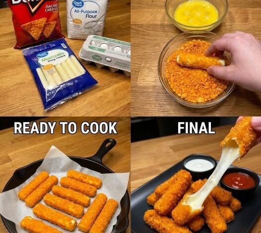 Golden crunchy sticks coated in crushed Doritos, stuffed with melted cheese, and fried until crispy—this is the ultimate cheesy snack for game nights, parties, or cravings.