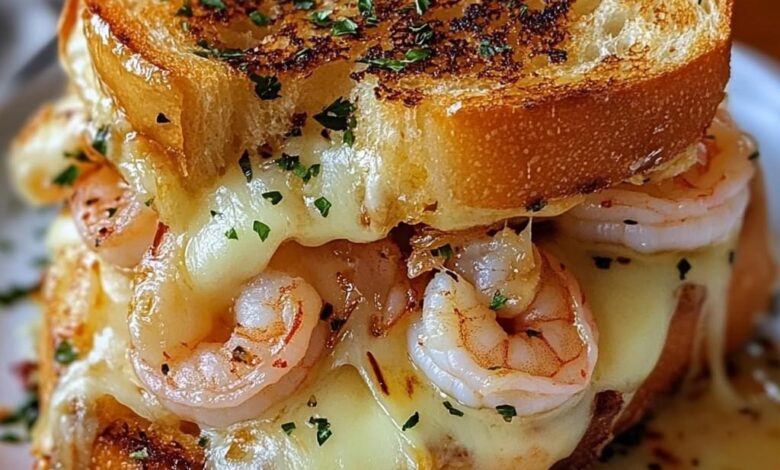 Ultimate Shrimp Grilled Cheese with Garlic Bread